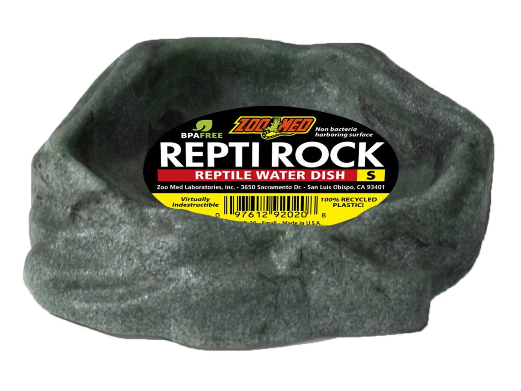 Miska na vodu pro plazy a další terarijní zvířata v designu, který připomíná kámen, díky čemuž ladí do interiérů většiny terárií a neruší celkový estetický dojem. Miska je nízká, takže se do ní zvířata snadno dostanou. Vnitřek misky je hladký a bez pórů pro snadné omývání a zamezení růstu bakterií. Vyrobeno ze 100% recyklovaného plastu. Bez BPA.