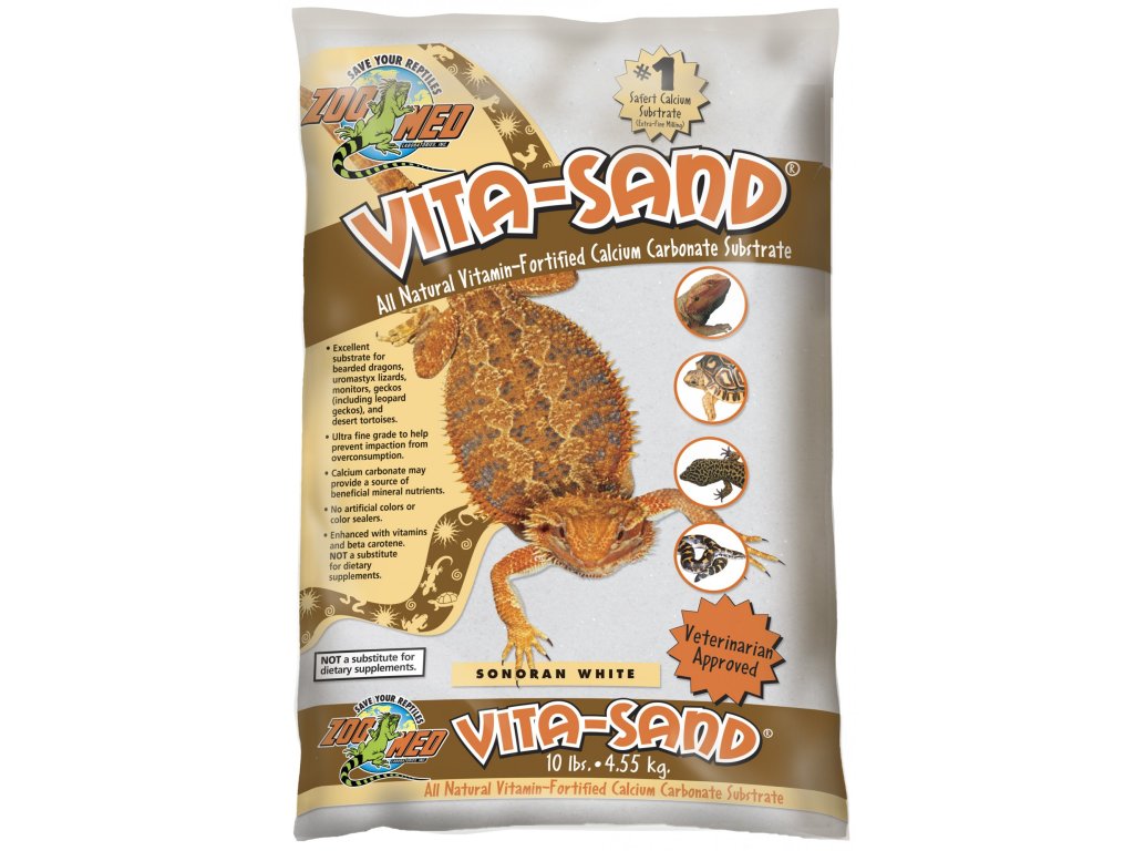 Přírodní substrát s uhličitanem vápenatým obohacený o vitamíny a beta karoten. Neobsahuje vitaminy rozpustné v tucích, které mohou být ve vysokých dávkách toxické. Uhličitan vápenatý pomáhá dodávat vápník. Bez umělých barviv. Ultra jemný substrát. Vhodný například pro agamy, trnorepy, varany, gekony a pouštní želvy. Pomáhá zvyšovat příjem denní dávky vápníku všem pouštním druhům plazů. Velice jemná zrnitost pomáhá předcházet zácpě z nadměrné konzumace.