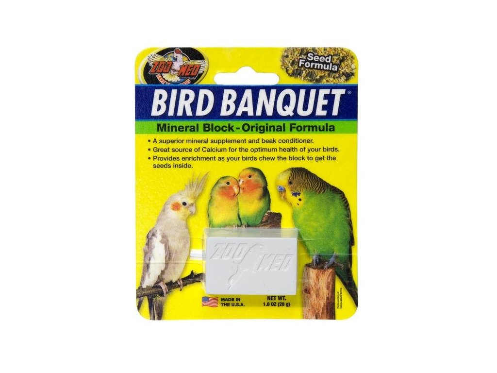 Zoo Med Original Bird Banquet je navržený, aby dodal nezbytný stravitelný vápník do stravy domácích ptáků, a zároveň zabraňuje přerůstání zobáku.