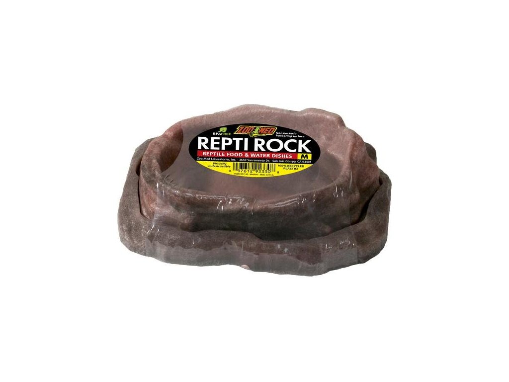 Misky na krmivo a vodu pro plazy a další terarijní zvířata v designu, který připomíná kámen, díky čemuž ladí do interiérů většiny terárií a neruší celkový estetický dojem. Misky jsou nízké, takže se do nich zvířata snadno dostanou, miska na vodu je o něco vyšší, ale stále snadno přístupná. Vnitřek misek je hladký a bez pórů pro snadné omývání a zamezení růstu bakterií. Pro pohodlí při manipulaci a přenášení lze misky zasadit do sebe. Vyrobeno ze 100% recyklovaného plastu. Bez BPA.