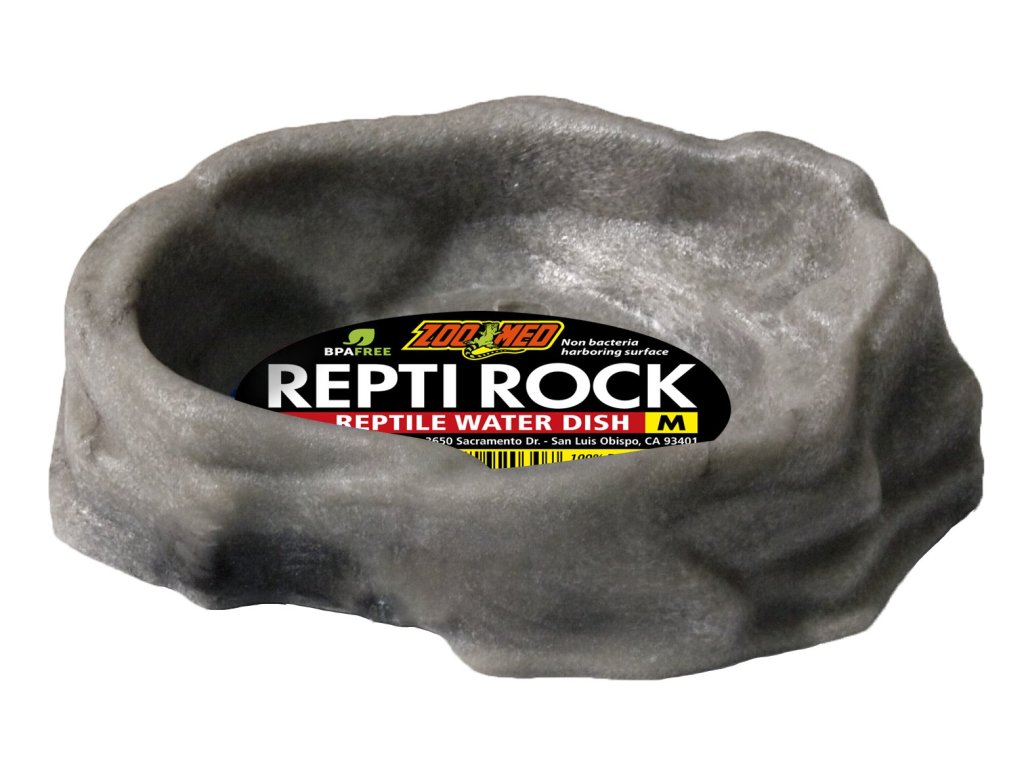 Miska na vodu pro plazy a další terarijní zvířata v designu, který připomíná kámen, díky čemuž ladí do interiérů většiny terárií a neruší celkový estetický dojem. Miska je nízká, takže se do ní zvířata snadno dostanou. Vnitřek misky je hladký a bez pórů pro snadné omývání a zamezení růstu bakterií. Vyrobeno ze 100% recyklovaného plastu. Bez BPA.